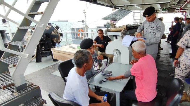 Bakamla RI menjemput 16 nelayan Indonesia yang ditangkap Agensi Penguatkuasaan Maritim Malaysia (APMM). Belasan nelayan itu diduga memasuki perairan Malaysia untuk menangkap ikan secara ilegal.