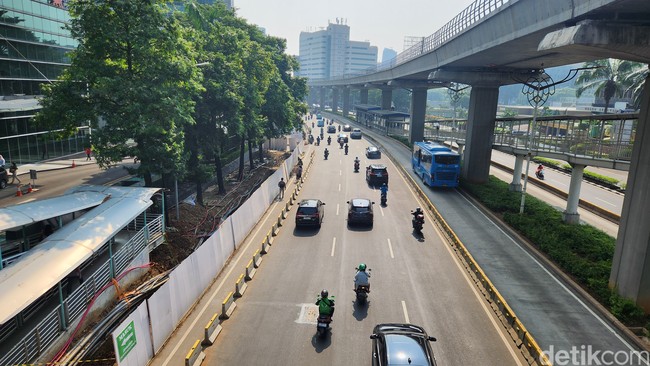 Pantauan detikcom di lokasi, Jumat (12/7/2024) sekitar pukul 09.30 WIB, lalu lintas dari arah Jl Mampang Prapatan Raya ke arah Kuningan lancar. Kendaraan pun dapat melaju dengan cepat.