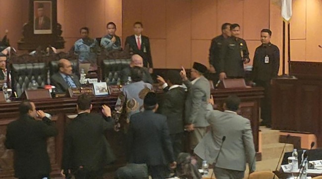 "Interupsi, interupsi, interupsi!" sahut senator di dalam paripurna.
