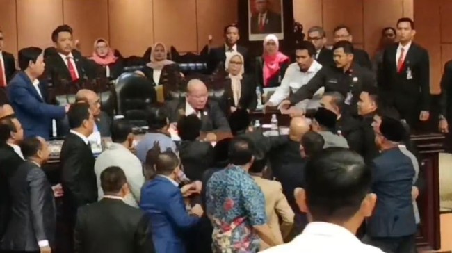 "Pada kesempatan ini, sebelum pimpinan menyampaikan laporan, dinamika politik yang terjadi kita mengesampingkan hal-hal urgen yang perlu mendapatkan kesalahpahaman bersama-sama. Terkait dengan kerja pansus dan hasil kerja pimpinan sebelum pimpinan melanjutkan ada pertanyaan saya ditujukan kepada badan kehormatan mohon untuk dijawab," ujar Felip.