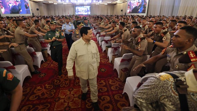 "Jadi saudara-saudara masuknya kalian ke dalam TNI dan Polri adalah bagian dari tujuan nasional. Kita butuh tentara yang sangat kuat, kita butuh kepolisian yang sangat hebat. Ini survival kita sebagai bangsa," ujarnya.