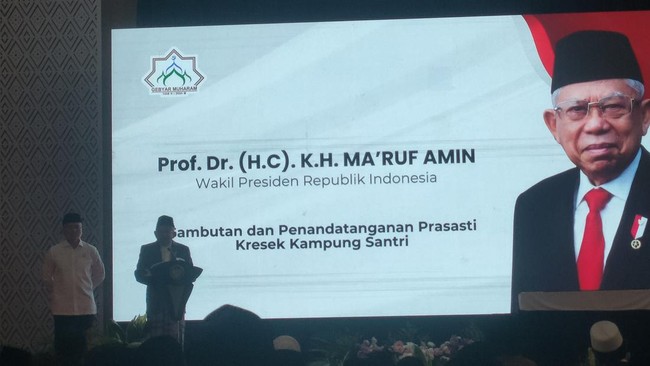 Hal tersebut disampaikan Ma'ruf dalam sambutanya di acara penandatanganan prasasti Kresek Kampung Santri. Turut hadir dalam acara ini istri wapres, Wury Ma'ruf Amin, hingga Pj Gubernur Banten Al Muktabar.