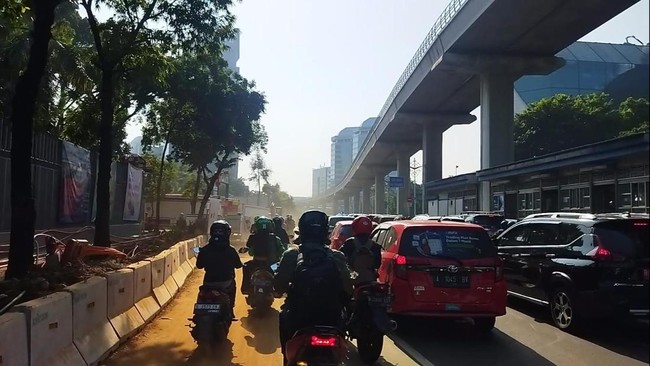 Proyek galian di Jalan HR Rasuna Said, Kuningan, Jakarta Selatan (Jaksel) membuat kemacetan dan jalanan semakin berdebu. Warga pun mengeluh karena harus menghadapi macet di tengah debu tebal yang muncul akibat proyek itu.