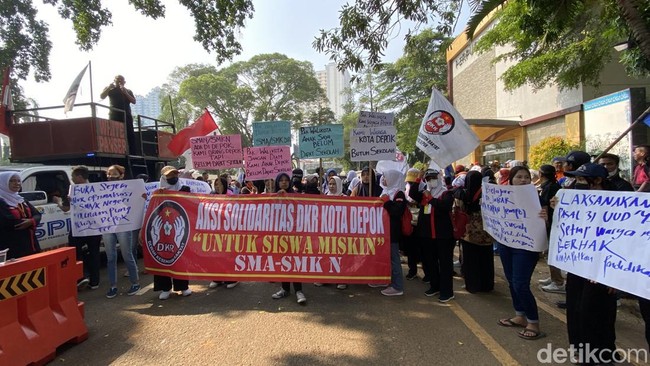 "Jujur kami pengen Pemerintah Daerah Disdik Depok secara regulasi SMA/SMK tidak menanungi itu, tapi kami hormatin sampaikan kepada Pemerintah Daerah. Ini masyarakat Kota Depok yang hari ini mau sekolah SMA/SMK banyak terlantar ini yang jadi keprihatinan kita," kata Koordinator Aksi Wido Pratikno kepada wartawan, Kamis (18/7).