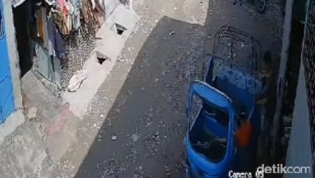 Rekaman lainnya memperlihatkan bajaj tinggal kerangka dan mesinnya. Pelaku juga terlihat mencopot bagian tiang atap.