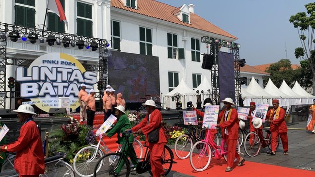 Pembukaan PNKJ 2024 ditandai dengan flag off oleh Budi Karya yang diiringi defile drum band, manusia patung, hingga pegiat ontel yang membawa kampanye keselamatan di jalan.
