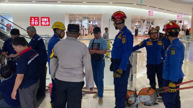 Korban yang terjepit sekira pukul 19.00 WIB. Korban akhirnya berhasil dievakuasi petugas Damkar dan tim engineering mal sekitar pukul 19.45 WIB.