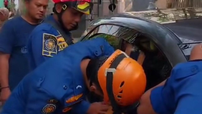 Menerima laporan warga, petugas Damkar segera menuju ke lokasi kejadian. Petugas menggunakan sejumlah peralatan hingga akhirnya kedua anak berhasil dikeluarkan dari mobil.