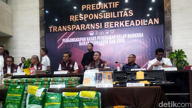 "Total barang bukti yang disita dalam TKP adalah satu sabu sebanyak 157 kg, di mana dilakukan penangkapan di Aceh Utara dan di Tangerang, Banten, ya, ini ada kaitannya satu sama lain. Pengembangan-pengembangan dari Aceh dapat ditangkap di Banten totalnya 157 kg," kata Mukti dalam konferensi pers di Bareskrim Polri, Jakarta Selatan, Senin (22/7/2024).