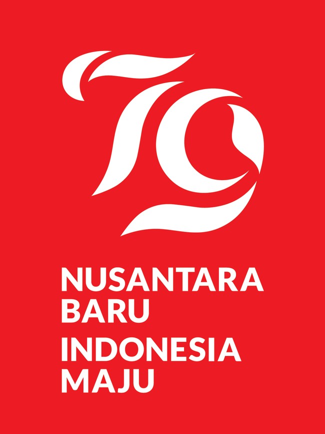 Logo HUT ke-79 RI menampilkan angka "79" disertai tulisan tema atau slogan "Nusantara Baru Indonesia Maju". Berikut makna logo HUT ke-79 RI.