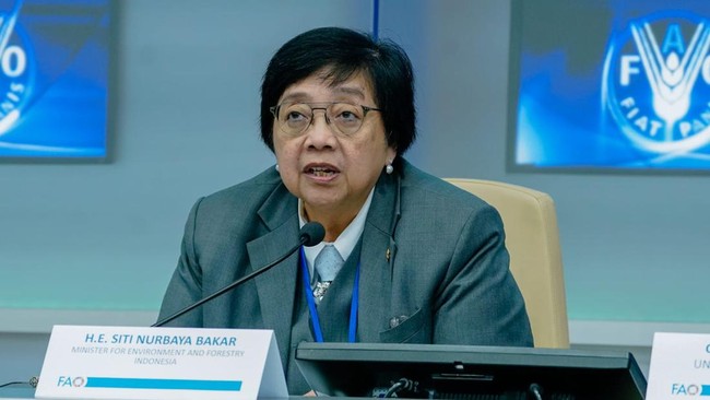 Menteri Lingkungan Hidup dan Kehutanan RI Siti Nurbaya menghadiri pertemuan Committee on Forestry (COFO) ke-27 di Roma, Italia. Pada Sesi Agenda Item 4 yang berjudul Keadaan Hutan Dunia 2024: Inovasi sektor kehutanan menuju masa depan yang lebih berkelanjutan, Siti memberikan apresiasi atas publikasi baru FAO 'Keadaan Hutan Dunia 2024' dengan tema utama 'Inovasi sektor kehutanan menuju masa depan yang lebih berkelanjutan'.