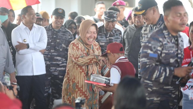 Risma pun bersama jajaran TNI AL meresmikan perpustakaan terapung tersebut. Kapal yang merupakan kapal perang Indonesia yang pertama kali memiliki perpustakaan.