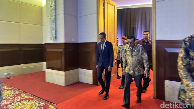 Pantauan detikcom, Kamis (25/7/2024), Jokowi tiba pukul 10.35 WIB. Jokowi langsung duduk di barisan depan.