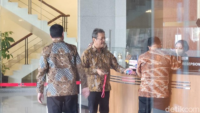 Pantauan detikcom di Gedung Merah Putih KPK, Jakarta Selatan, Trenggono terlihat hadir sekitar pukul 08.50 WIB. Trenggono mengenakan pakaian batik cokelat.