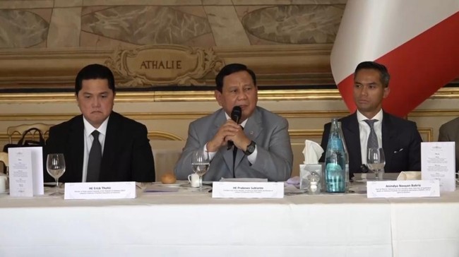 Adapun pertemuan dihadiri langsung oleh Dubes Indonesia untuk Prancis Mohamad Oemar, Menteri BUMN Erick Thohir, Wakil Ketua Komisi IV DPR RI yang juga Waketum Gerindra Budisatrio Djiwandono, Wakil Ketua Komisi I DPR RI Sugiono, Wisnu Wardana, hingga Rosan Roeslani.