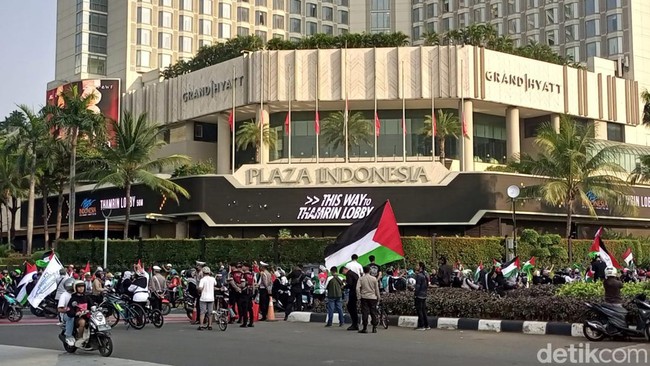 Sejumlah elemen masyarakat melakukan konvoi bermotor dalam aksi bela Palestina. Konvoi dimulai dari Masjid Agung Al-Azhar hingga berakhir di JIExpo Kemayoran.