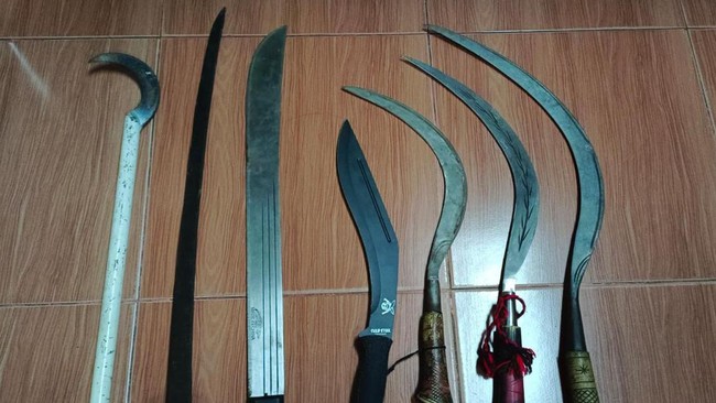 Dalam kasus ini, polisi menyita barang bukti berupa 17 pucuk sajam jenis cocor bebek, satu buah petasan flash ball, 9 unit sepeda motor, 14 unit telepon seluler (ponsel), dan satu bungkus air keras.
