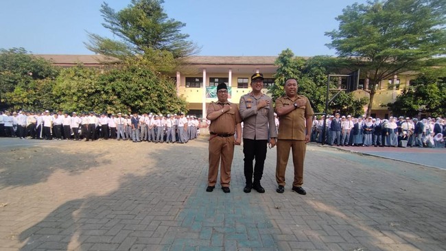 Kompol Bambang Askar menjadi pembina dalam upacara di SMK Negeri 2 Tangsel, Senin (29/7/2024). Bambang menekankan para siswa untuk menjauhi kenakalan remaja, termasuk narkotika.
