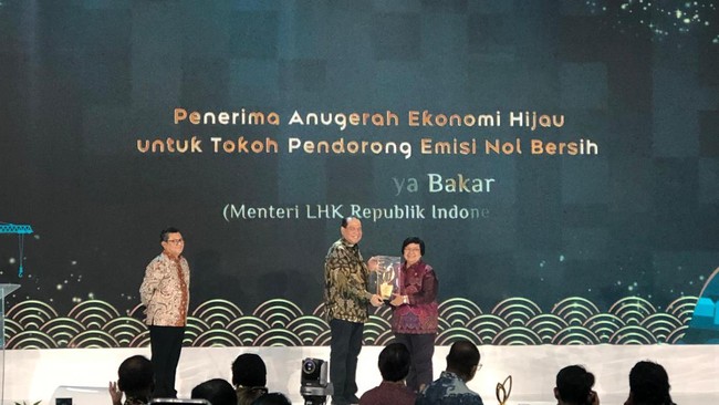 Menteri Lingkungan Hidup dan Kehutanan (LHK) Siti Nurbaya Bakar menerima penghargaan sebagai Tokoh Pendorong Emisi Nol Bersih dalam gelaran Anugerah Ekonomi Hijau detikcom 2024. Siti pun berbicara soal pentingnya perekonomian yang rendah emisi karbon.
