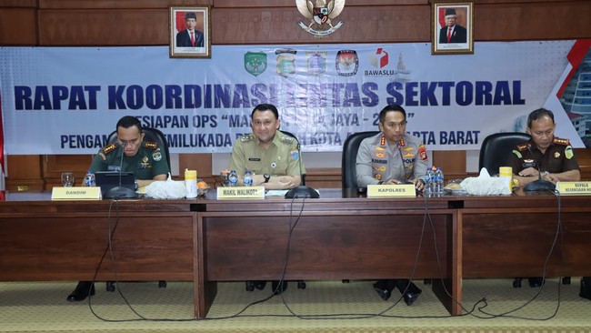 Polres Metro Jakarta Barat menggelar rapat koordinasi (rakor) bersama Forum Komunikasi Pimpinan Kota (Forkopimko). Rapat koordinasi ini berfokus pada pengamanan Operasi Mantap Praja Jaya 2024 menjelang Pilkada DKI Jakarta.