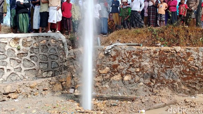 "Itu terjadi setelah selesai ngebor. Lalu keluar semburan air yang warnanya keruh. Tingginya itu sekitar 18-20 meteran gitu," kata Dirham.