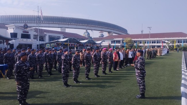 TNI Angkatan Laut (AL) mengadakan upacara penyambutan kepada peserta ASEAN-Plus Cadet Sail (APCS) 2024 di Dermaga Markas Komando Lintas Laut Militer (Kolinlamil), Tanjung Priok, Jakarta Utara (Jakut). Penyambutan dipimpin langsung Panglima Kolinlamil Laksda TNI Hudiarto Krisno Utomo.