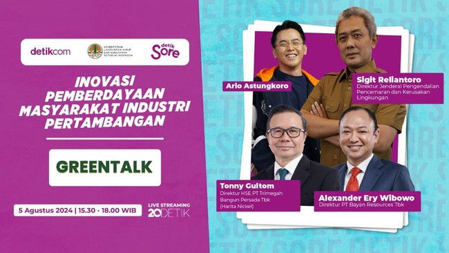 Ingin tahu lebih lanjut mengenai program Green Smelter? Topik ini akan dikupas tuntas secara mendalam langsung bersama ahlinya dalam Greentalk bertema 'Inovasi Pemberdayaan Masyarakat Industri Pertambangan' di detikSore yang tayang di 20detik.com, 5 Agustus 2025 pukul 15.30-18.00 WIB.