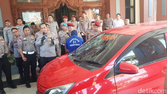 Mobil yang disita sebagai barang bukti itu juga dihadirkan dalam konferensi pers di Mapolres Kudus, Senin (5/8/2024). Mobil itu tampak rusak pada bagian kaca depan dan bumper depan. Pelat nomor yang terpasang di mobil itu K-1048-C.