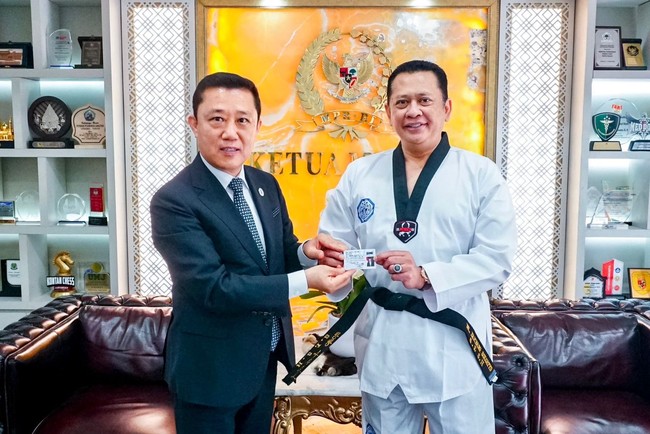 Ketua MPR RI Bambang Soesatyo menerima sertifikat dan penyematan sabuk kehormatan DAN VII dari Kukkiwon, organisasi resmi taekwondo yang didirikan oleh pemerintah Korea Selatan. Penyematan sabuk dilakukan oleh Dean of Taekwondo Departement Michael Sou, Myung-rul dan ertifkat ditandatangani oleh President of Kukkiwon Lee Dong-sup.