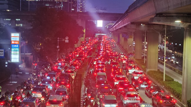 Pantauan detikcom di lokasi, Jalan Rasuna Said, pukul 18.40 WIB, Rabu (7/8/2024), kemacetan terjadi dari arah Kuningan menuju Mampang. Kendaraan hanya bisa melaju perlahan di jalur tersebut.