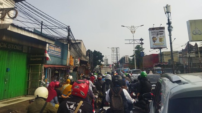 Pantauan detikcom di lokasi, Senin (12/8/2024) pukul 08.00 WIB, kendaraan baik mobil maupun sepeda motor memadati seluruh ruas Jalan. Mereka pun harus memperlambat laju kendaraannya.