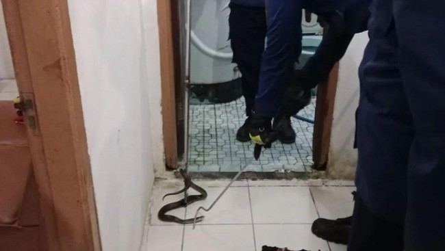 Seorang warga di Cirimekar, Cibinong, Kabupaten Bogor, Jawa Barat (Jabar), dikejutkan dengan kemunculan ular kobra di dalam rumahnya. Ular kobra tersebut ditemukan di kamar mandi.