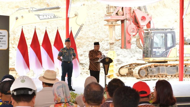 Wakil Presiden (Wapres) Ma'ruf Amin melakukan peletakan batu pertama atau groundbreaking Istana Wakil Presiden di Kawasan Ibu Kota Negara (IKN) Nusantara, Kalimantan Timur (Kaltim). Ma'ruf Amin bersyukur bisa menjadi saksi sejarah pembangunan Istana Wapres di IKN.