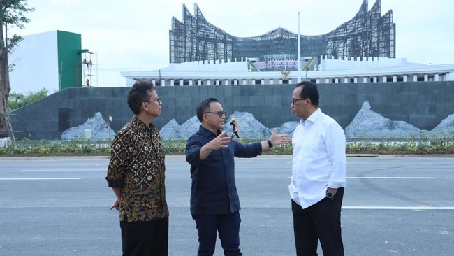 Usai meninjau area embung, Anas meninjau Sumbu Kebangsaan di Kawasan Inti Pusat Pemerintahan IKN. Sumbu Kebangsaan di KIPP IKN merupakan ruang terbuka yang menjadi simbol hubungan harmonis antara alam, manusia dan nilai luhur kebudayaan.