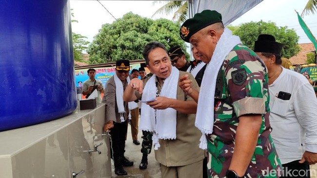 Pangkostrad Letjen TNI Muhammad Saleh Mustafa meresmikan bantuan instalasi air di pesisir Kasemen, Kota Serang, Banten. Dua instalasi air berkapasitas 10.000 liter air diberikan sebagai bentuk bantuan program TNI AD Manunggal Air.