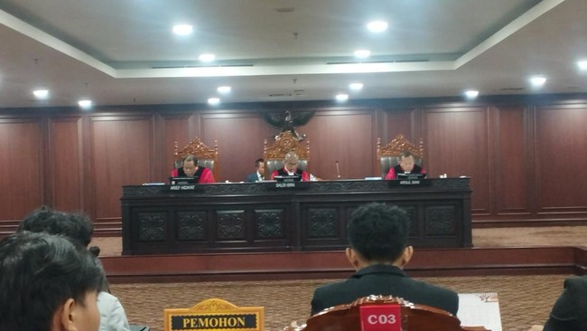 Perubahan petitum itu dibacakan oleh Arkaan dalam sidang perkara 88, 89, 90/PUU-XXII/2024 yang digelar di gedung MK, Jakarta Pusat, Senin (12/8/2024). Hakim MK Saldi Isra bertindak sebagai ketua panel.