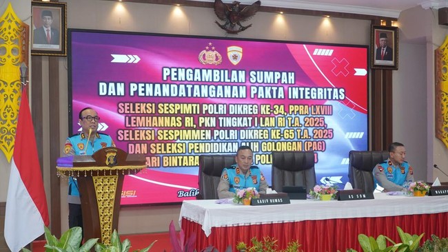 Asisten Kapolri Bidang Sumber Daya Manusia (As SDM Kapolri), Irjen Dedi Prasetyo, memimpin kegiatan pengambilan sumpah dan penandatanganan pakta integritas seleksi terpadu Pendidikan Pengembangan (Dikbang), Sekolah Staf dan Pimpinan (Sespim) dan pendidikan kepemimpinan bagi anggota Polri mulai dari kepangkatan bintara hingga perwira menengah hari ini. Dia mengatakan proses seleksi sudah berbasis IT.