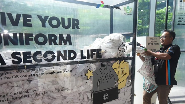PT Pertamina (Persero) berhasil melakukan daur ulang 7.066 baju seragam yang dikumpulkan secara sukarela oleh 1.834 Perwira Pertamina Group. Total limbah dari program daur ulang baju seragam Pertamina ini sekitar 2,4 ton dan dikalkulasi sebagai penghematan emisi karbon setara dengan 41,8 ton Co2e.