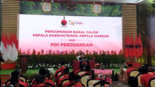 "Ya siapa bilang, aku bilang, suruh masuk PDI Perjuangan. Kalau kamu pun merasa capek, out, keluar, keluar semua, keluar. Saya lebih senang biar 5 (orang) tapi emh (semangat) gitu, keren deh," ucap Megawati.