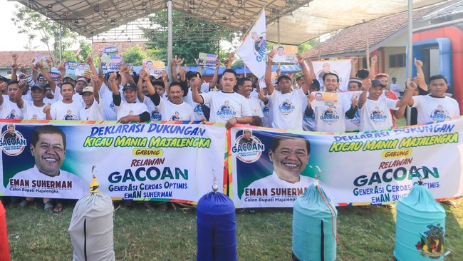"Bersama relawan Gacoan, Komunitas Kicau Mania Majalengka berkomitmen menghimpun dukungan untuk pemimpin bersih Haji Eman Suherman dengan cara santun, bermartabat, dan tidak melanggar peraturan yang berlaku," sambungnya.