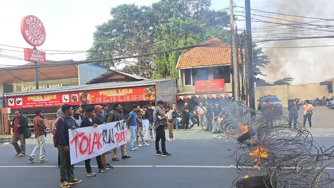 Unjuk rasa sekelompok mahasiswa di Jl Jenderal Sudirman, Bogor Tengah, Kota Bogor, diwarnai kericuhan. Para mahasiswa mencoba 'menyelinap' menuju pintu utama Istana Bogor.