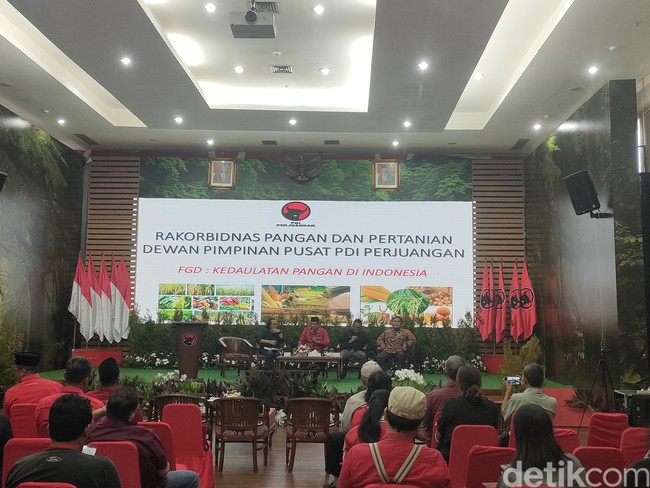 PDI Perjuangan menggelar focus group discussion (FGD) dalam rangka Rapat Koordinasi Bidang Nasional (Rakorbidnas) Pangan dan Pertanian hari ini. Dalam kegiatan ini, ditekankan soal kedaulatan pangan RI hingga kesejahteraan para petani.