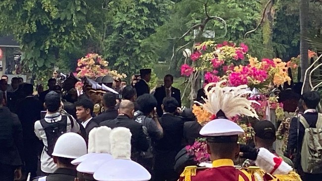 Pantauan detikcom, Jumat (16/8/2024), Jokowi tiba pukul 13.18 WIB. Jokowi mengenakan setelan jas hitam.