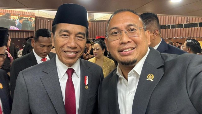 "Sidang Paripurna DPR RI ke-1 Pidato Kenegaraan Presiden Republik Indonesia Pak @jokowi Penyampaian RUU APBN TA 2025. Jumat 16 Agustus 2024 di DPR RI," kata Andre Rosiade mengenai foto tersebut.