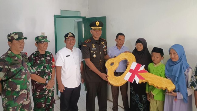Penyerahan kunci rumah dilakukan langsung oleh Anton bersama jajarannya. Terdapat dua pemilik rumah veteran yang direnovasi oleh jajaran TNI.