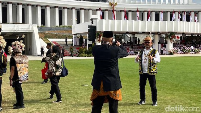 Upacara HUT ke-79 RI di Ibu Kota Nusantara (IKN) menjadi sejarah karena pertama kalinya digelar di ibu kota baru. Istana Negara IKN menjadi ajang foto-foto bagi para tamu undangan yang hadir.