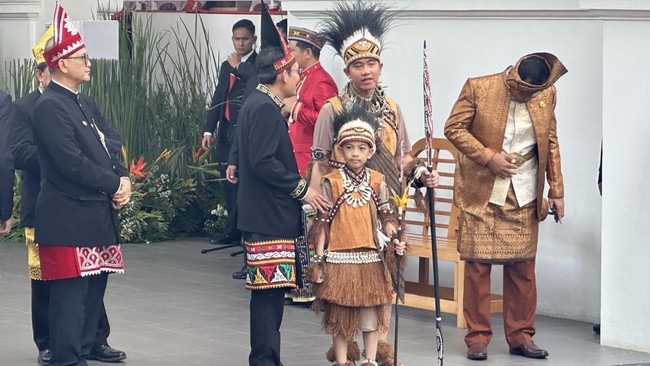 Ada yang pakai adat Jawa, adat Betawi, hingga adat Bali. Banyak yang mendokumentasikan outfit masing-masing dengan latar belakang Istana Merdeka.