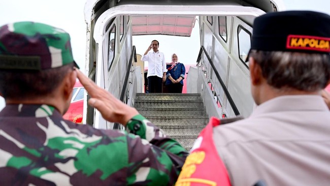 Pj Gubernur Kalimantan Timur Akmal Malik, Pangdam VI/Mulawarman Mayjen TNI Tri Budi Utomo, Kapolda Kalimantan Timur Irjen Nanang Avianto, Danlanal Balikpapan Kolonel Laut (P) Edi Kuswanto, serta Danlanud Dhomber Kolonel Pnb David Ali Hamzah terlihat melepas keberangkatan Jokowi.