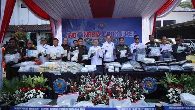 Badan Narkotika Nasional (BNN) RI memusnahkan barang bukti narkotika dari 8 kasus yang ditangani pada Juni-Juli 2024. Lima kasus di antaranya ditangani BNN bekerja sama dengan Ditjen Bea-Cukai dan TNI.