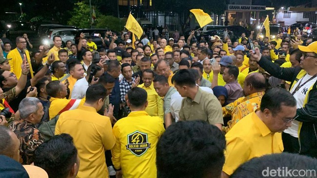 Pantauan detikcom, Senin (19/8/2024), Bahlil tiba di DPP Golkar sekitar pukul 19.55 WIB. Dia datang mengenakan kemeja kuning dan celana hitam.